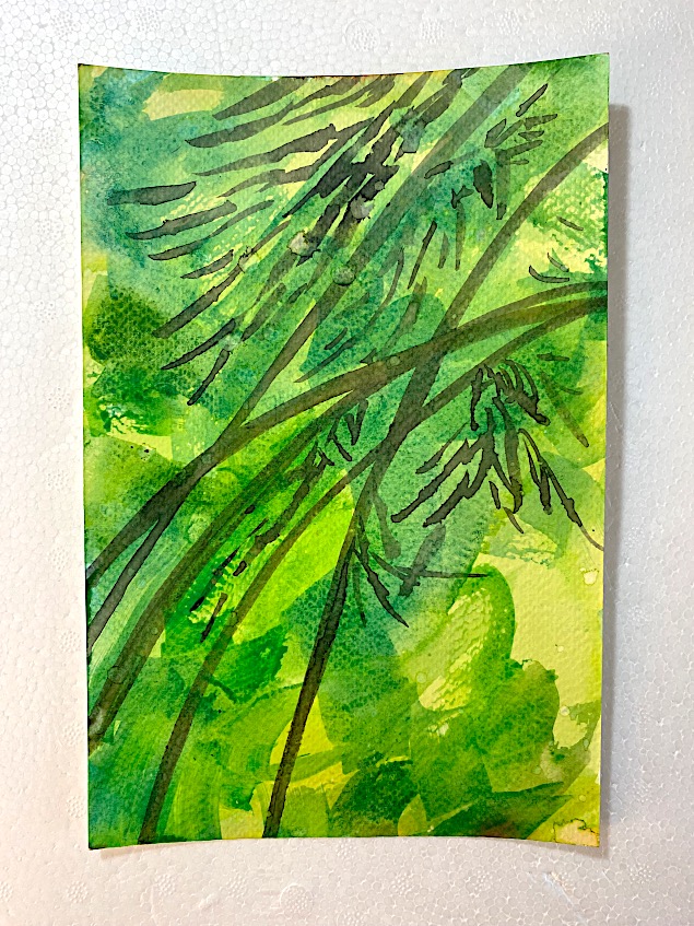 My process is more intentional when I compose my bamboo forest and flowers paintings, as well as wooded area paintings in acrylics and watercolors.