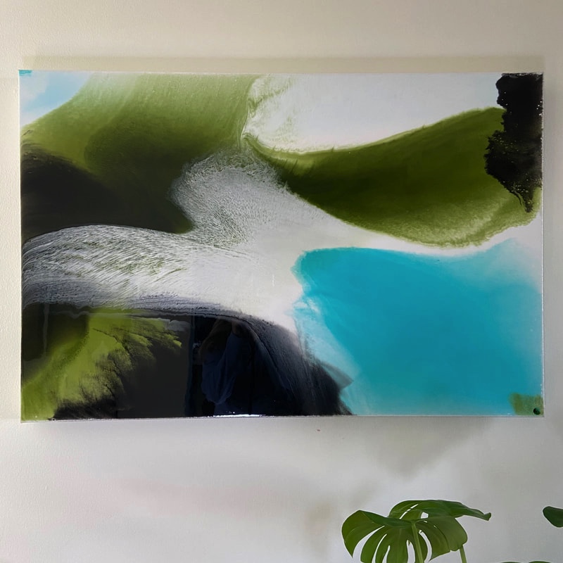 Recently back in the U.S. after years abroad, she is channeling her experiences into fresh work and connecting with new collectors who share her love of bold, expressive art. She paints using oil, acrylic, and resin.