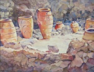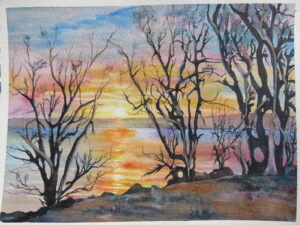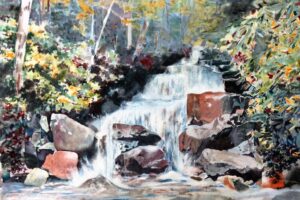 Kathy’s collection of photographs provide inspiration for her realistic paintings as they reflect her love of nature, travel, and challenges of portrait paintings. She strives to combine the wonderful loose flow of watercolor with her attention to detail.   Painting provides a beautiful balance alongside her love of travel, spending time with her grandchildren, gardening, and staying physically active in her retirement.